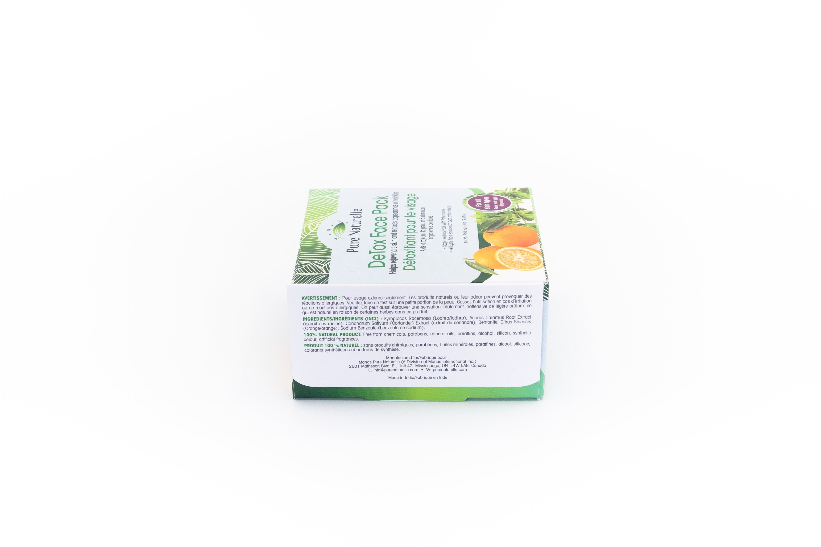 Coriandrum Sativum (Coriander); Acorus Calamus (Vach); Bentonite Clay (Argile Bentonite); Citrus Sinensis (Orange); Symplocos Racemosa (Lodhra); Sodium Benzoate.