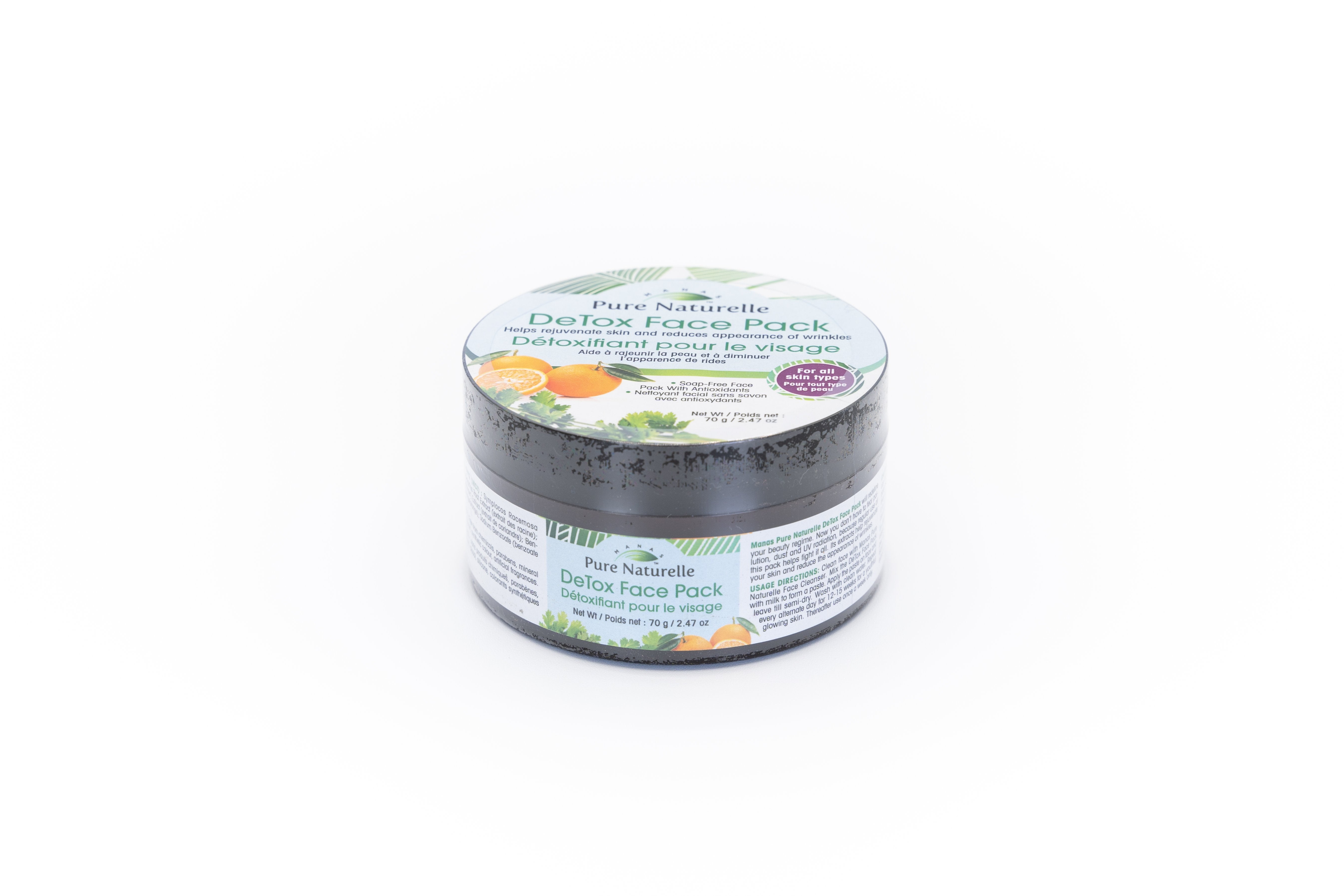 (For all skin types) Clean face with Manas Pure Naturelle Face Cleanser. Mix the DeTox Face Pack with milk to form a paste. Apply the paste on face and leave till semi-dry. Wash with clean water. Repeat every alternate day for 12-15 weeks for a youthful glowing skin. Thereafter use once a week only, After every use, keep the plastic lid tightly secure to avoid moisture. Use within 60 days of opening this jar.